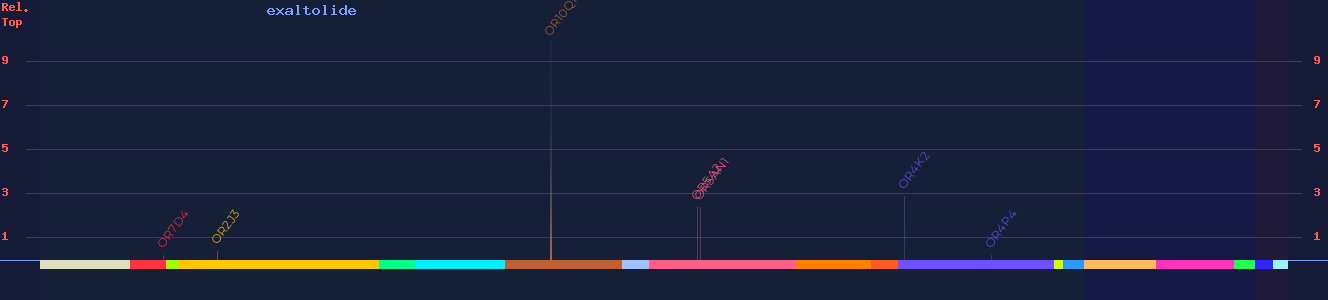 | OR4K2 | 100 | - | 2.8846 5 | clove, animal, cortex, sharp, foliage, musk, bitter | |