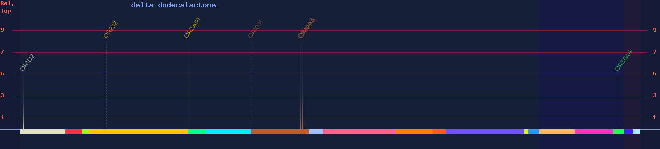 | OR2AP1 | ? | - | (agonist) 5 | peach, coconut, apricot, lactonic | |